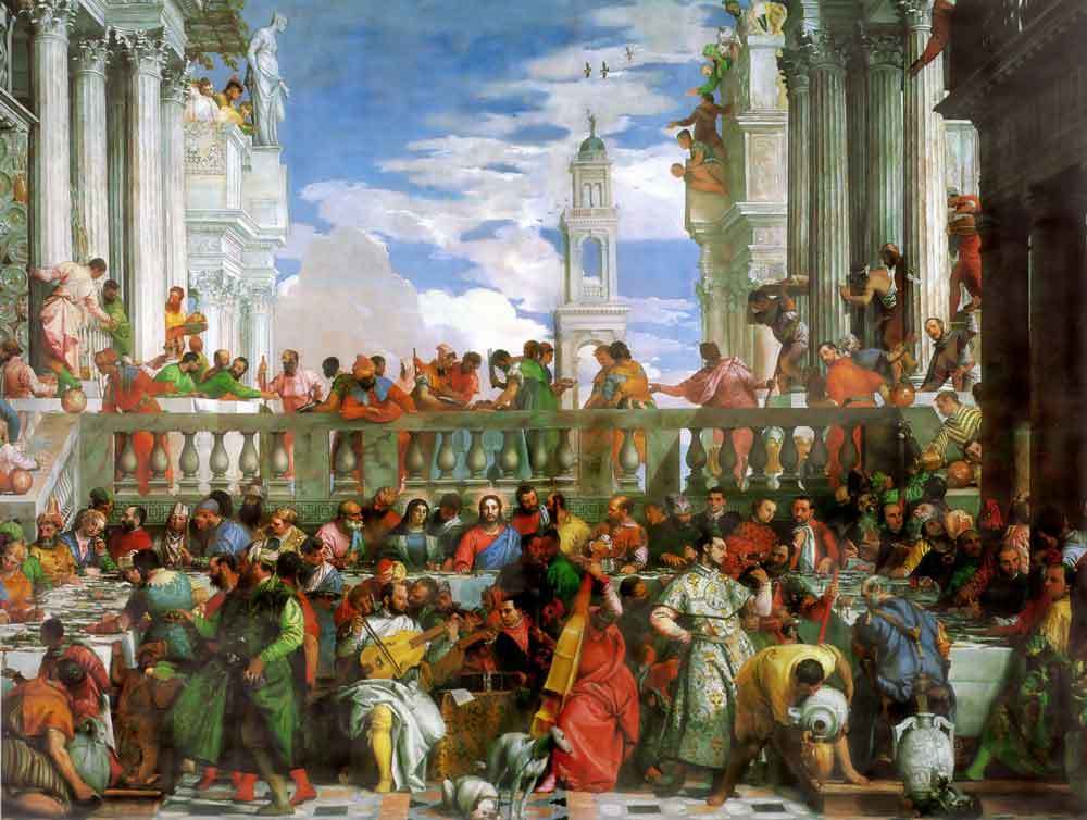7-Dinsel sahneleri, dönemin Venediki’nde geçiyormuş gibi resmeten Veronese’in – Kana Düğünü -1563
