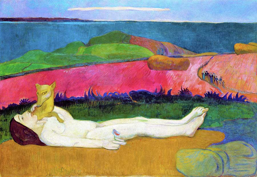 Uygar dünyaya ait tüm sorumluluklarını geride bırakarak, yeni arayışlar için çıktığı yolculuğunda Güney Pasifik’in yerlileri arasına yerleşmiş Gauguin. Resimlerinide yeni yaşam tarzından etkilenerek yapmış.