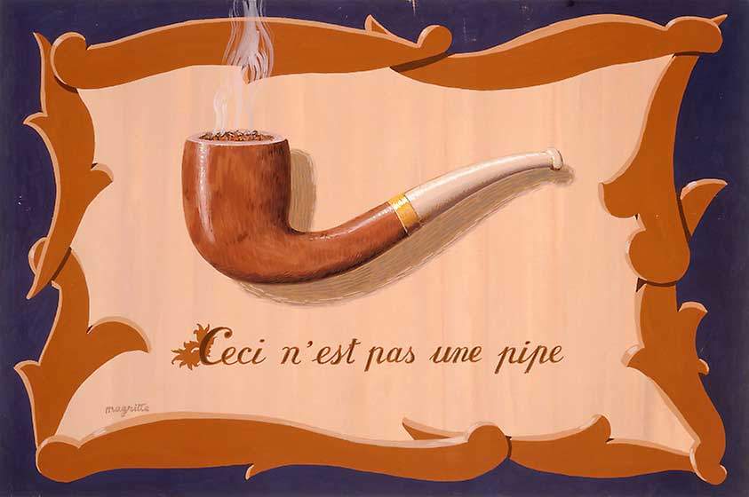 Magritte “Şu pipo için bana ne çok soru soruldu. Siz benim tablomdaki pipomu doldurabilir misiniz? Yapamazsınız, değil mi? O sadece bir röprezantasyon (temsil). Eğer tablomun altına “Bu bir pipodur” diye yazsaydım, size yalan söylemiş olurdum.” demiş.