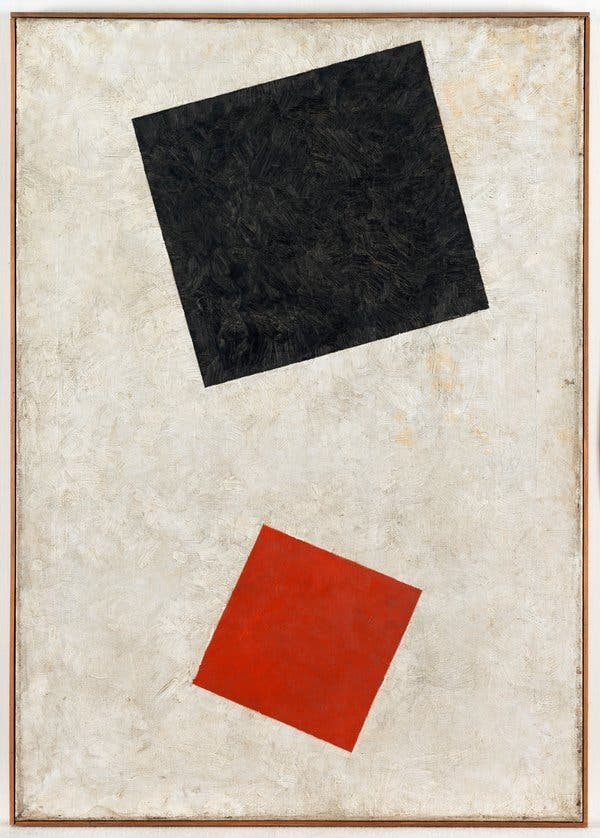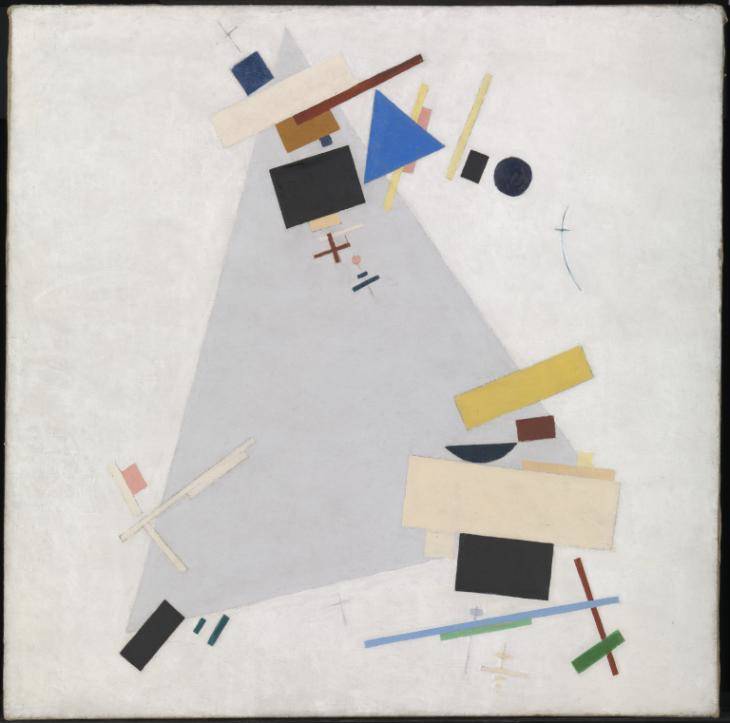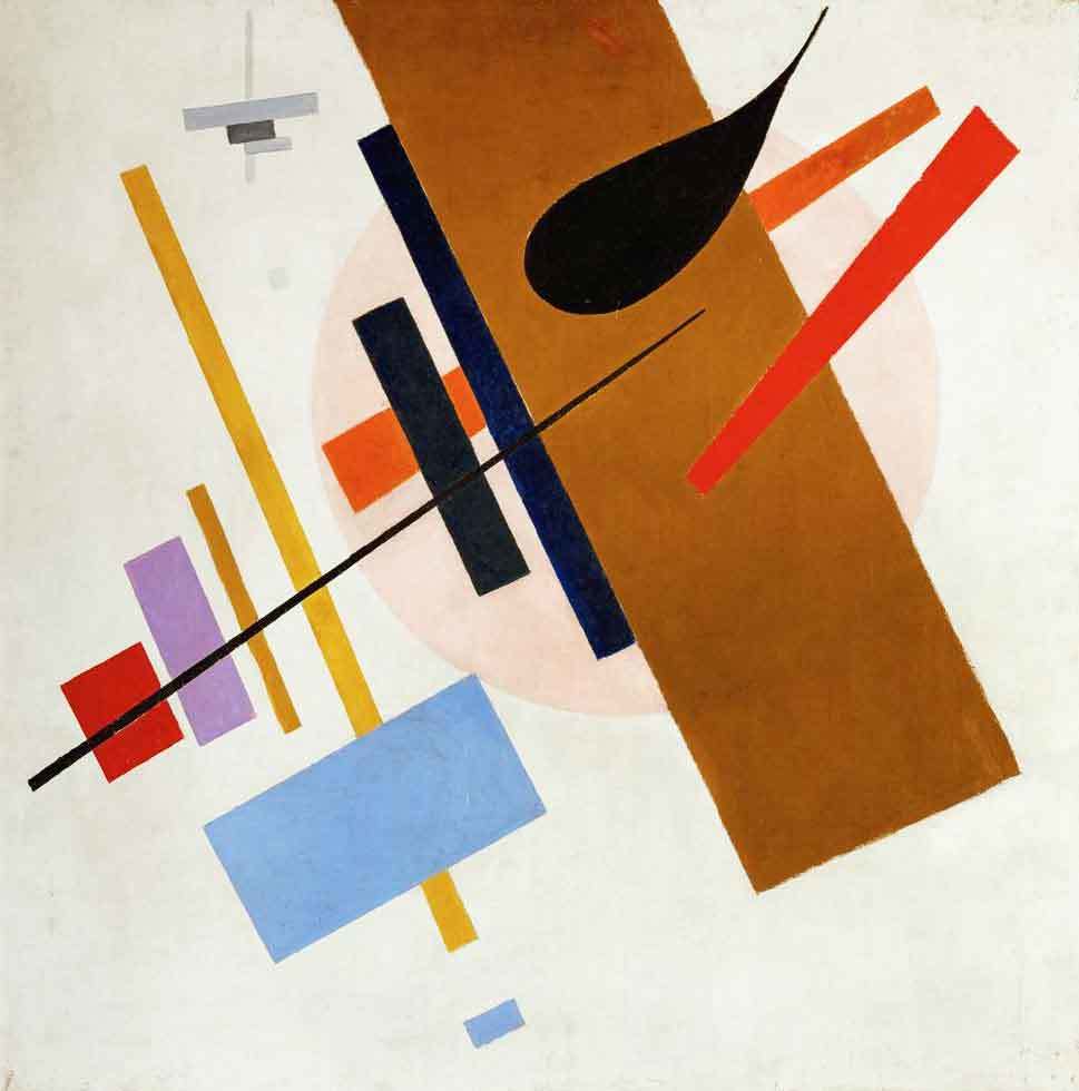 1915’te Petrograd’daki (bugün St Petersburg) sergisinde, soyut, geometrik resim tarzını Süprematizm olarak isimlendirmiş. Süprematizms Rus Devrimi’nden önce başlamış olsa da Malevich’in radikal sanat yaklaşımı Sovyet döneminin başlangıcında yayılmış.