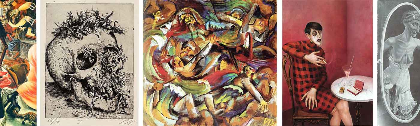 Savaş yıllarında Fütürizm ve Kübizme yönelmiş. Dadaist ve Ekspresyonist unsurları çalışmalarına entegre etmeye başlamış. 1920’den sonra cinsel şiddet, cinayet ve zulüm konularını eserlerne yansıtmış. Skat Oyuncuları (Card-War War Cripples) (1920) bu garip ama dokunaklı görüntülerin bir örneğidir.
