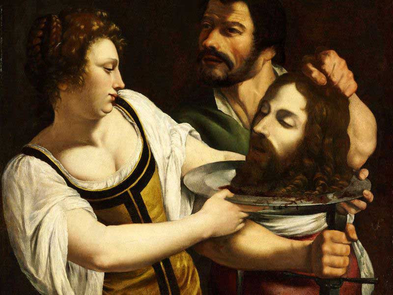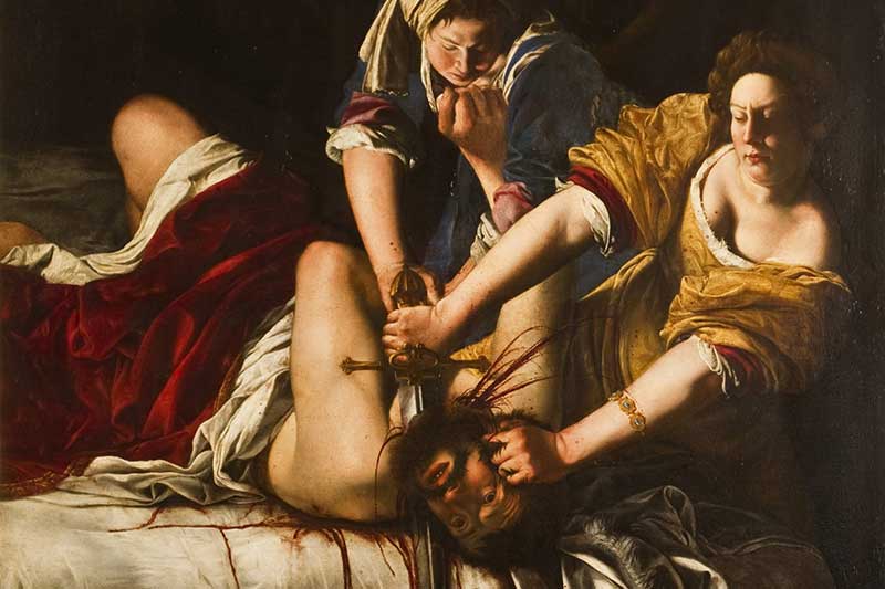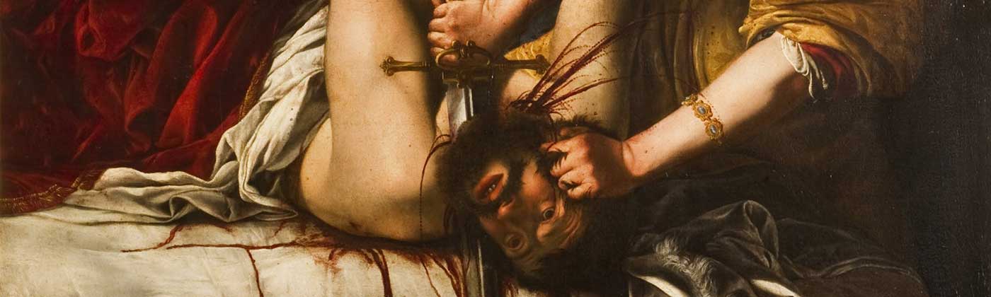 Musevi kadın kahraman Judith’in, kendisine tecavüz etmeye çalışan Asurlu tiran Holofemes’in başını kesmesini gösteren bu resim, sanatçının kendi acısının güçlü bir ifadesidir. Bu betimlemenin, onun için psikolojik olarak, intikamını alabilmenin bir yolu olduğuna inanılmaktadır.