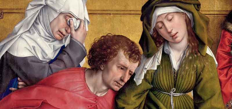 Burada dünyevi yaşamdakine benzeyen duygusal yoğunluk oldukça dokunaklıdır. Arka planı sınırlayarak van Der Weyden, Gotik minyatür resmin ayrıntılı gözlemiyle Gotik heykelin ifadeci jestlerini bir araya