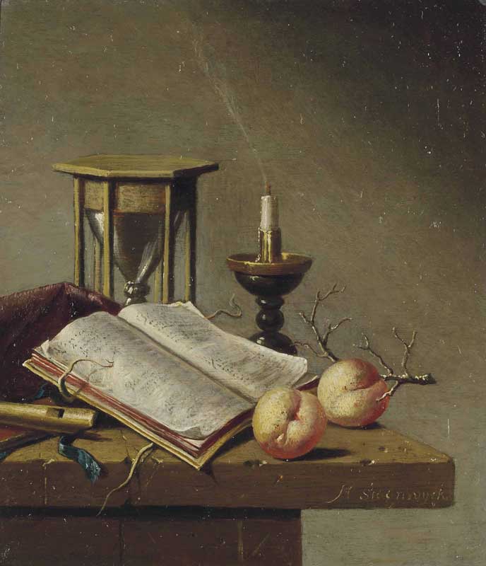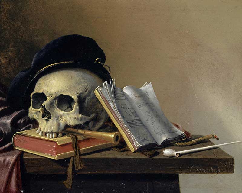 Harmen Evertz Steenwyck 1620’den itibaren bir tür natürmort olan vanitas tarzın en önde gelen sanatçılardanmış. Vanitas resmi, yaşamın geçiciliği, dünyevi şeylerin boşluğu ve ölümün kaçınılmazlığını çağrıştıran sembolik nesnelerin bir araya gelmesiyle oluşmakta.